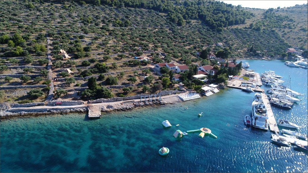 Riblji restoran “Fešta” nalazi se u uvali Golubovac na otoku Žutu u prekrasnom kornatskom arhipelagu. Smješten među stoljetnim maslinama uz samu obalu uz koju je postavljeno privezište sa strujom i vodom.